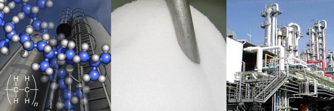 Polyethylen (PE, [– CH2 – CH2 – ]n ) wird durch Polymerisation von Ethylengas gewonnen und ist ein thermoplastischer Kunststoffe der Gruppe der Polyolefine.